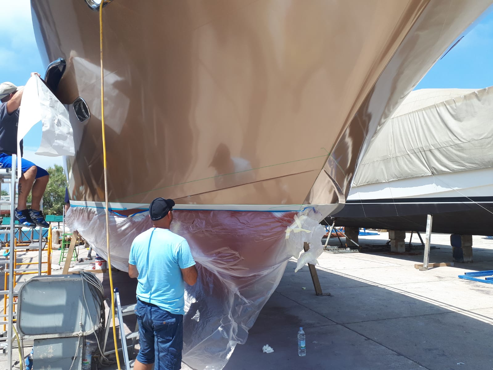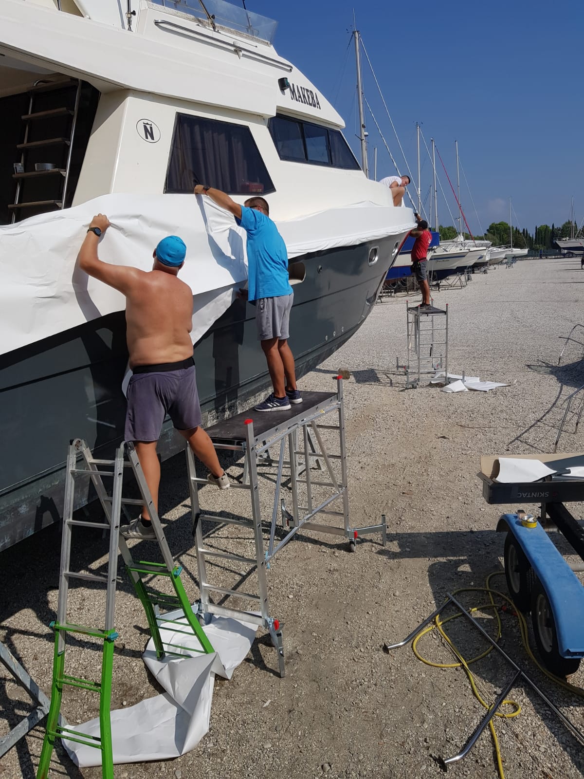 Za obljepljivanje plovila folijom, ovisno o veličini, potrebno je svega 1-3 dana što je znatno brže u odnosnu na klasično bojanje trupa. Folijama se postiže atraktivan izgled, a u ponudi imamo i folije sa metalic, carbon i ostalim atraktivnim efektima koje je klasičnim bojanjem gotovo nemoguće postići.