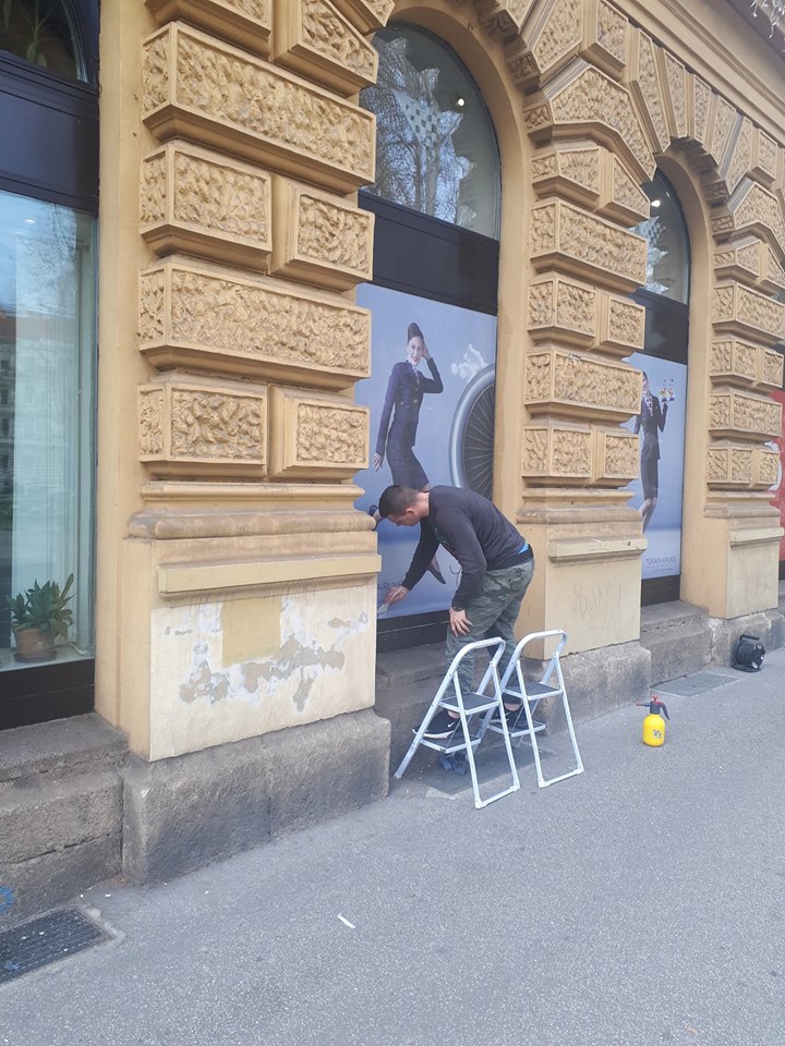 Prozorska grafika ili brendiranje izloga čini proces izrade idejnog rješenja (reklamne poruke) zatim projektiranja grafičkog rješenja i samu izradu odnosno tisak reklamnih PVC folija koje se zatim montiraju na eksterijer i enterijer Vašeg lokala ili poslovnog prostora.Kvalitetno urađeno brendiranje čini Vaš objekat ili poslovni prostor prepoznatljivim, lakšim za lociranje, i savršen je način da originalnim izgledom privučete potencijalne kupce ili klijente. Sve u cilju uspješnijeg poslovanja i unapređenja Vašeg biznisa. Prilikom brendiranja izloga koriste se različite vrste materijala u zavisnosti na kakvu se površinu apliciraju ili montiraju. U našem asortimanu raspolažemo sa: