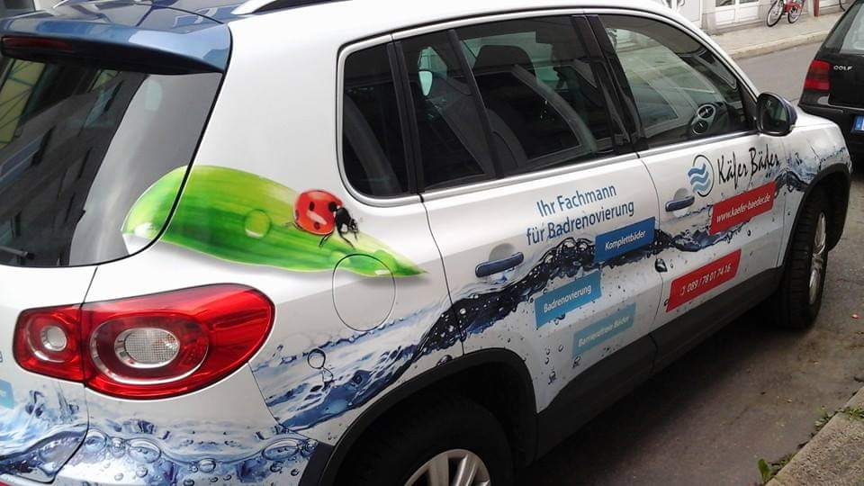 Izvodimo obljepljivanje vozila kompletno sa folijom ili djelomicno obljepljivanje vozila. Izrađujemo dizajn folija a isto tako izvodimo i reklame na vozilima. Bilo kao natpisi ili kao djelomicno obljepljivanje tiskanom folijom ili kompletno obljepljivanje vozila. Izvodimo također zatamljivanje stakla i izdavanje AB certifikata po Njemačkom zakonu.